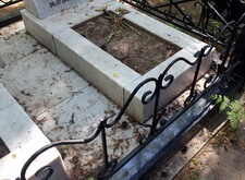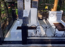 Так выглядело место захоронения на момент окончания работы: деревянный крест покрыт защитным раствором; мраморные изделия отшлифованы и покрыты гидрофобной субстанцией, стыки элементов промазаны белым герметиком; полые столбики, восстановлены; в цветнике заменена земля и посажен газон.