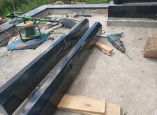 Зачищаем поверхность основания, на которой будет установлено надгробье, врезаем опорные арматурные штыри.